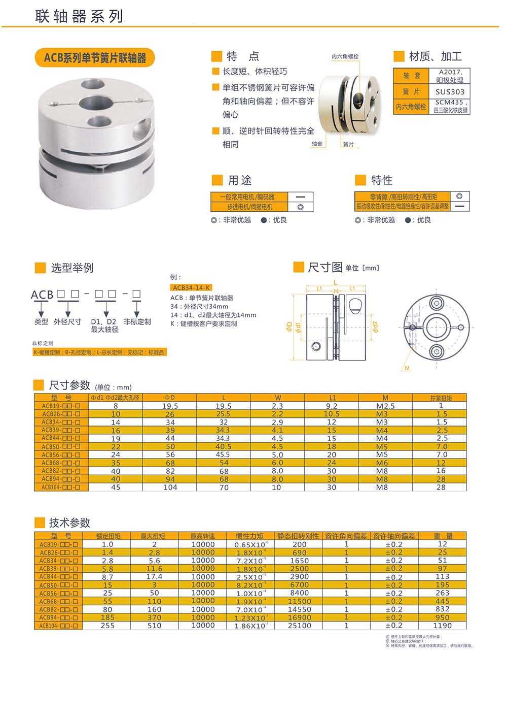 所屬型號:ACB系列 所屬品牌:艾而特 所屬分類:聯軸器 應用領域:紡織行業 電梯行業 機床行業